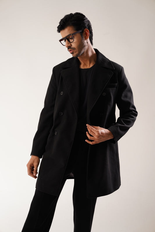 TEXTURED WOOL BLEND COAT - Black