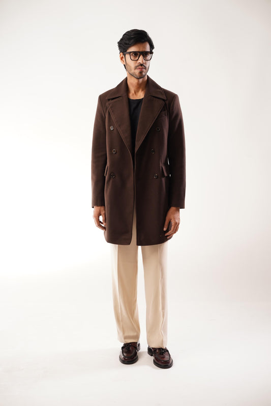 TEXTURED WOOL BLEND COAT - Brown